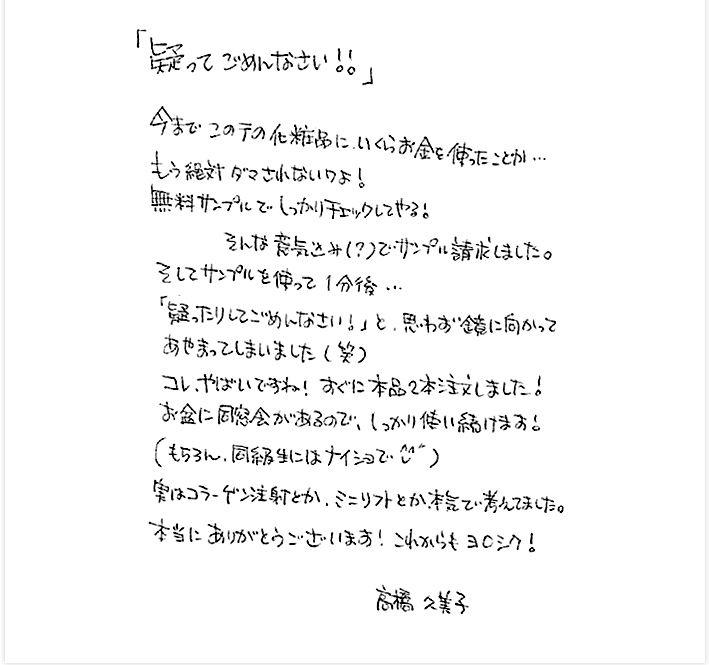 ROSYを使ったマッサージのやり方を教わり、寝る前には必ずやっています。口元のほうれい線が薄くなり、顔も軽くなった感じです。